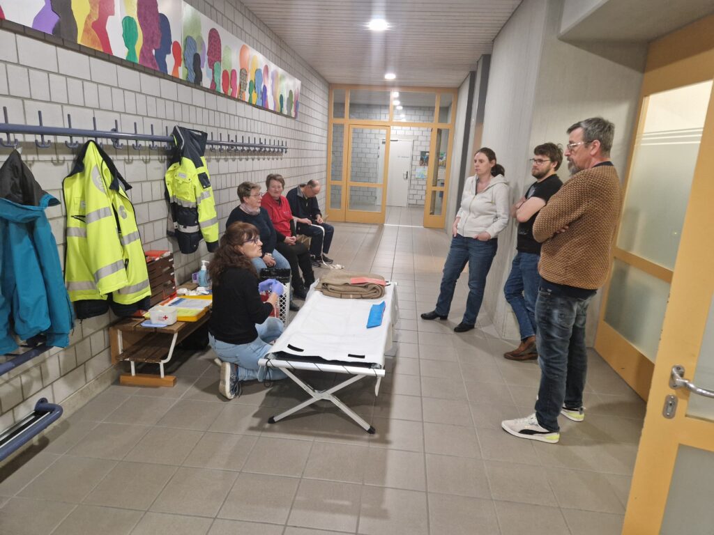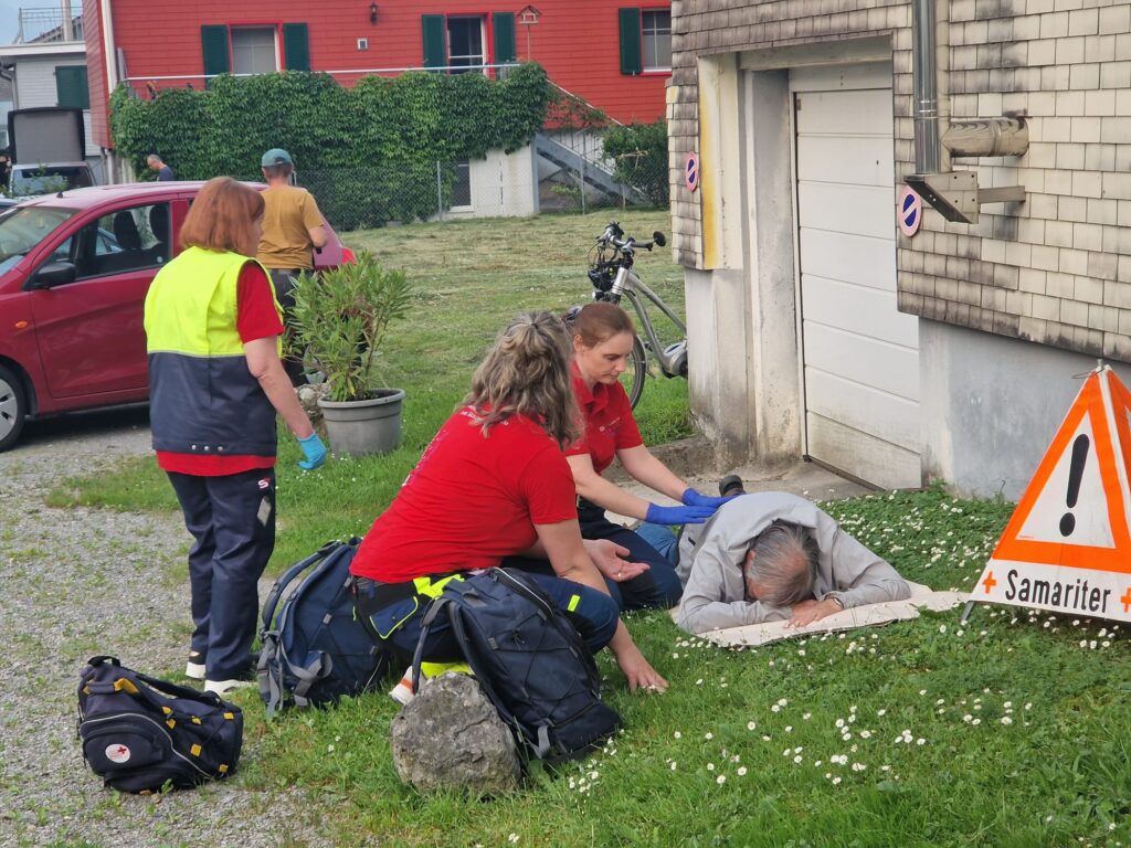 Übung im DorfSpass mit verbändenBesuch bei der Rega